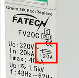Vamos a referirnos al «Back Up Fuse» con las siglas Fdps. De acuerdo al gráfico, si el DPS se instala en un sistema donde los fusibles aguas arriba F1 son mayores que la capacidad Fdps que soporta el DPS, es necesario usar Fusibles F2 previos para la protección del DPS. Si por el contrario, F1 es menor que la capacidad de sobrecorriente que soporta el DPS, no es necesario.