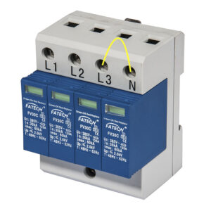 Al hacer el análisis de riesgo de una instalación se calcula la corriente que el DPS deberá soportar por cada polo. Si se protege para un nivel de riesgo I, o sea, 99% de seguridad, se debe proteger para corrientes de rayo de hasta 200kA 10/350. Eso implica, según el método IEC, que cada modo del DPS debe soportar 25kA 10/350 si el DPS es trifásico. Si es monofásico trifilar (2L+N+T), cada modo debe soportar 33kA 10/350. En el primer caso el DPS existe. En el segundo caso no. En esta situación se instala un DPS trifásico y se hace un puente entre la línea 3 y el neutro del DPS, lo que mantiene la capacidad de protección sin afectar el desempeño.