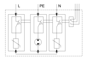 Los DPS Tipo 3 se pueden instalar aguas abajo de los interruptores RCD, si y solo si, se van a utilizar para proteger contra sobretensiones transversales (L-N). En este caso se debe adicionar un módulo al DPS para que aísle el sistema de protección de la tierra a través de una vía de chispas.