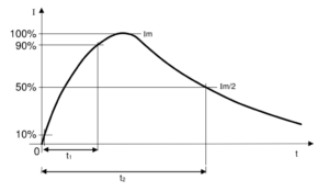 Las formas de onda básicas para probar DPS se conocen como 10/350 y 8/20. Estos números implican el tiempo que se demora un transiente en alcanzar su pico (10μs y 8μs) y el tiempo hasta que la onda decrece hasta la mitad de su amplitud (350μs y 20μs):